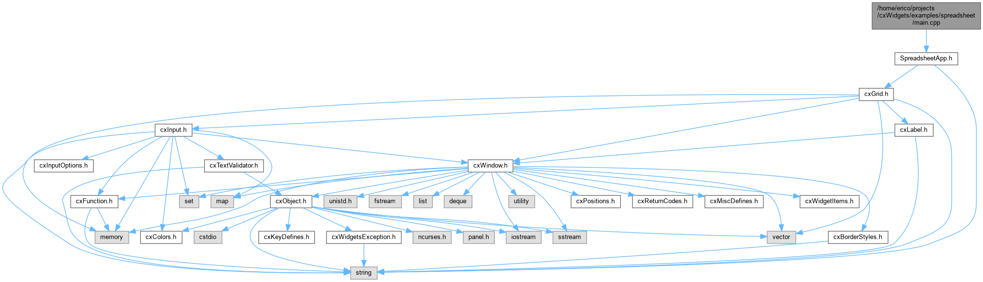 Include dependency graph for main.cpp: